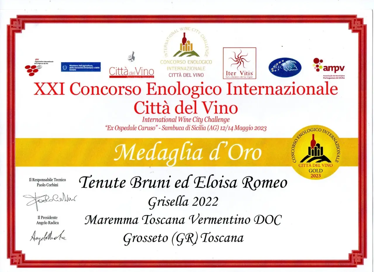 International Wine Competition Città del Vino 2023 awarded Grisella Maremma Toscana DOC